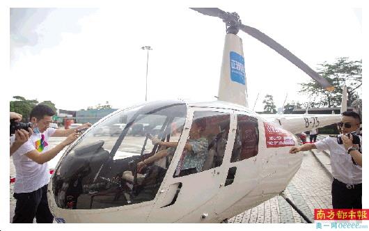 6月6日下午,一架直升机在首届直播节(中国·广州)荔湾花鸟鱼虫新世界分会场做展示。