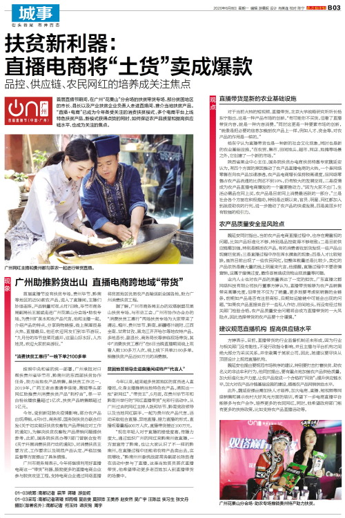 首届直播节期间,在广州“花果山”分会场的扶贫带货专场,部分贫困地区的市长、县长以及产业扶贫企业负责人走进直播间,推介当地扶贫产品。“直播+电商”已成为今年备受关注的消费扶贫模式,多个电商平台上线特色扶