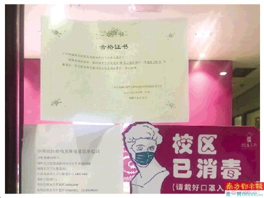 南都记者发现,通过有关部门检查验收合格后,培训机构会将“合格证书”张贴在机构的门外。如树华美术培训中心玻璃门上就贴着由海珠区新型冠状病毒肺炎疫情防控指挥部办公室教育防控组发的“合格证书”,上面写着“经现场联合验收……符合新冠肺炎疫情防控学生返校条件,特此证明”。