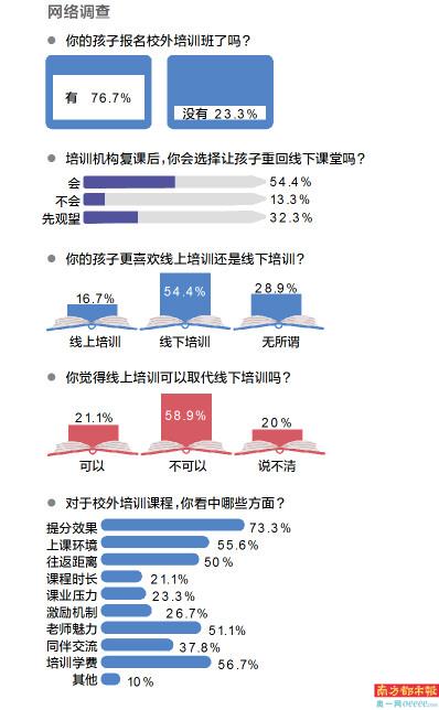 随着疫情受到控制,校外培训机构也陆续恢复线下课堂,线下VS线上,家长会选择哪个?南都教育联盟发起热点站站队互动,数据显示,校外培训机构复课,过半网友表示会重回线下培训。