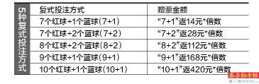 据悉,为扩大活动覆盖面,更好地贴近购彩者的复式投注习惯,本次双色球赠票活动将针对5种彩民喜爱的复式投注开展,即:“7个红球+1个蓝球(7+1)、7个红球+2个蓝球(7+2)、8个红球+2个蓝球(8+2)、9个红球+1个蓝球(9+1)、10个红球+1个蓝球(10+1)”。即日起,广州彩民可在全市福彩投注站、好易自助终端及电视购彩渠道采用规则内的5种复式投注双色球游戏。