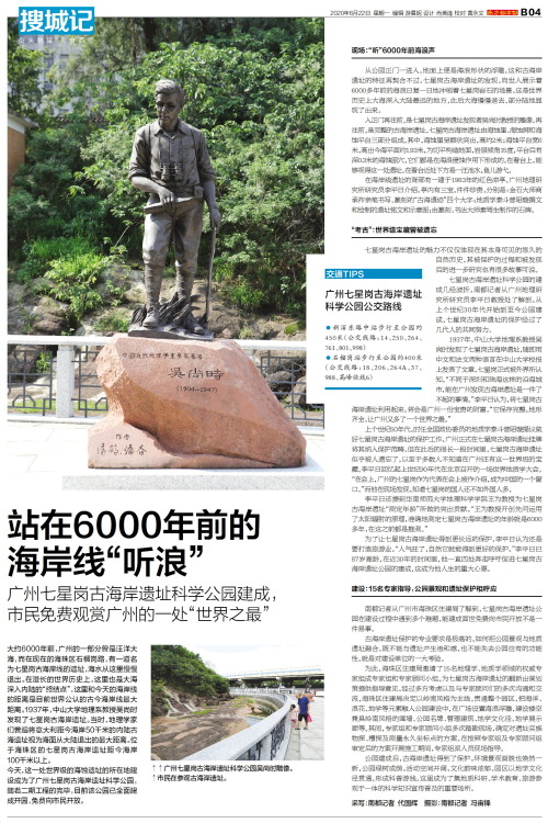 大约6000年前,广州的一部分曾是汪洋大海,而在现在的海珠区石榴岗路,有一道名为七星岗古海岸线的遗址,海水从这里慢慢退出。在漫长的世界历史上,这里也是大海深入内陆的“终结点”,这里和今天的海岸线的距离