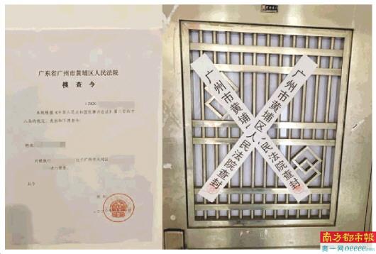 黄埔区人民法院下达的搜查令和房屋查封现场。 受访者供图