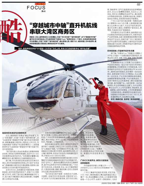 南都讯 近日,越秀商投引入东部通航,打造广州CBD首个“城市候机楼”,试飞“穿越城市中轴”直升机空中游览航线。作为越秀商投“悦享会Yue+”服务的其中一个部分,未来越秀商投将联手东部通航,打造广州首个