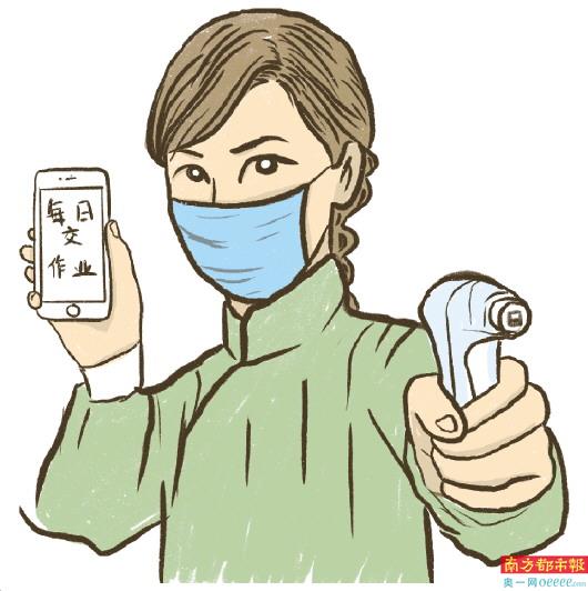 我们一窝蜂冲下楼,隔着办公室的玻璃窗朝她使劲挥手。“喂!小迪,你说叶老师还会回来教我们吗?”要是以前我肯定会很希望她能回来教我们,但今天我却突然犹豫起来,自返校以来的事,一幕幕地在我脑海里回放——返校第一天,我套上久违的校服,戴好口罩,带上洗手液,穿上似乎变小了的运动鞋,背上书包,伴着那一声声“体温正常,请通过”,我怀着无比激动的心情蹦跳着进入那美好的校园,踏进那似曾相识的教室。进教室第一眼我就看见有个人在讲台上弯着腰弄电脑,她矮矮胖胖的,戴着天蓝色的大口罩,配上那件紫红色的T恤,我心想这大概是来帮忙搞电脑的。我坐在座位上望着窗外默默地发呆:真希望叶老师赶紧回来教我们。如果放寒假前一刻她的腿没有摔伤,不用做手术那该多好啊……上课铃响了,讲台上的她还没有离开教室。接下来她做自我介绍——原来她正是那个令我好奇了长达119天“非常”寒假的新老师——刘老师。正式上课后,我认为终于不用在“每日交作业”小程序里上传作业了,可她却说非常时期为了减少共同触摸,作业还要在网上批阅。“哼,那可真轻松!还不是让家长批改嘛。”我小声吐槽。可我似乎想错了。她会发现上传作业图片里的任何一个错别字,即使我那细心到极致的妈妈看书面作业都没有发现;她会听出我上传的背诵音频中的任何一个差漏,即使我以为一点问题也没有……