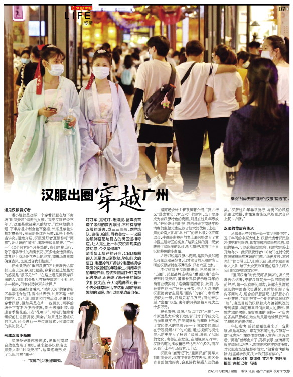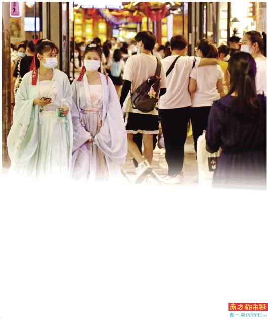 穿梭“时尚天河”逛街的汉服“同袍”们。