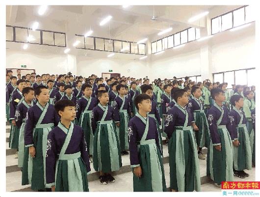 安置区旁边的锦绣学校已经开始招生,并在今年迎来了第一批毕业生。7月10日,学校举行了一场毕业典礼,200多名小学毕业生穿着校服和汉服,在学校的大礼堂内,以朗诵、歌唱的形式跟小学母校说再见。