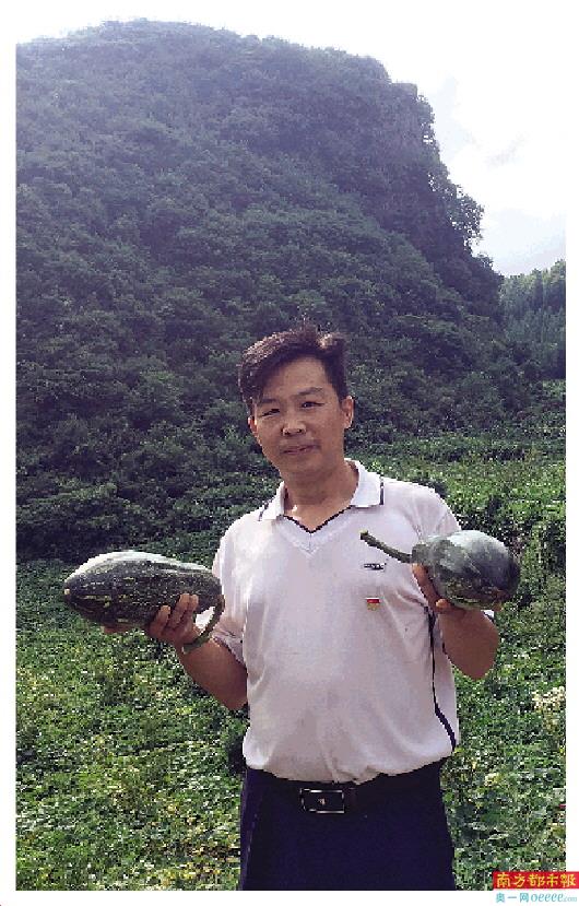 位于织金县白岩脚村的南瓜种植基地,村支书夏厚远展示种植的南瓜。