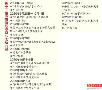 南都讯记者许晓蕾 作为广东省委省政府印发《广州市推动城市文化综合实力出新出彩行动方案》重点任务,同时也是2020年广州文交会系列活动之一的第十三届中国国际漫画节,将于9月28日至10月11日举办。