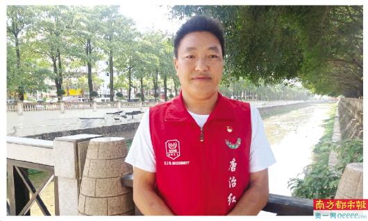 深圳市龙田护河义工队队长唐治红,是坪山区龙田街道龙田社区治安队工作人员,也是一名巡(护)河员、民间河长、志愿者。成立护河队3年以来,唐治红所担任民间河长的田坑河水质得到明显改善,此前从未有过护河工作经验的他,在这三年里研究出了一套独特的护河口诀,号召了越来越多普通市民加入护河工作。
