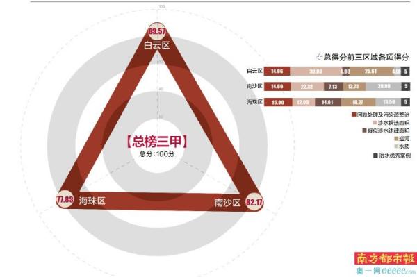 广州河长履职榜单考虑了违建拆除的执行情况、违建存量,污染源的整治情况,问题处理的情况,村居级河长巡河、镇街级河长巡河、区级河长巡河、水质情况,以及典型优秀治水案例。