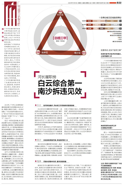 榜 单 说 明 广州河长履职榜单由南方都市报独立制作,数据主要来源于向广州市河长办申请公开的相关数据,以及广州市河长管理信息系统中的部分情况记录。榜单围绕广州市委市政府部署的治水重点工作,及广州市对三