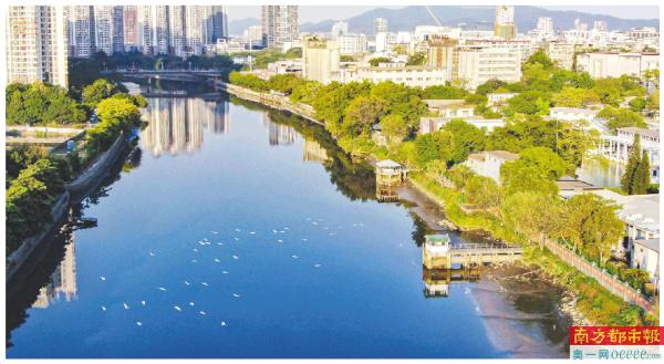 经过河涌整治,石井河水清岸绿,引来白鹭栖息。