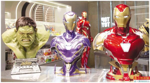 尤为引人注目的是,店里还能看到1:1的钢铁侠和3D打印的蜘蛛侠。据工作人员介绍,钢铁侠全身战甲按照1:1人设打造的,然后每一个细节都是经过三至四道工序做成,身上的喷涂都是潮玩设计师亲自喷涂上去的,并不是工厂的批量加工。全球只有66件,在中国有33件,其中有两件在TOP TOY。整个手办是3D打印形成,代表新时代的潮玩告别了以前的旧式制作方式。