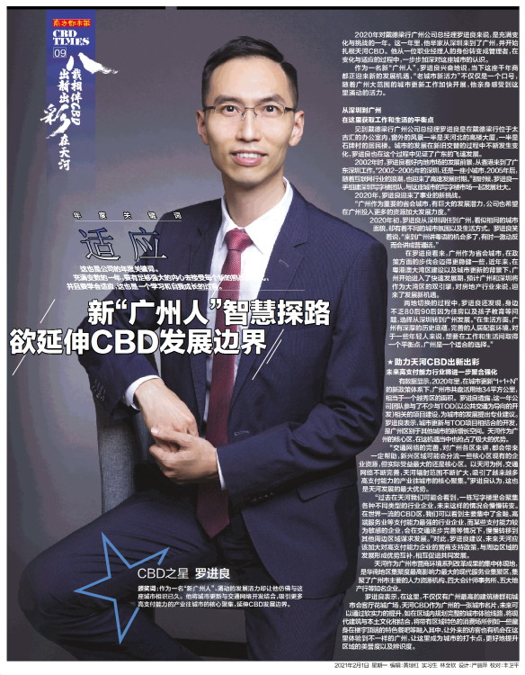 年度关键词 适 应这也是公司的年度关键词。 充满变数的一年,要有足够强大的内心去接受每个新的挑战和变化,并且要学会适应,这也是一个学习和自我成长的过程。 CBD之星 罗进良颁奖词:作为一名“新广州