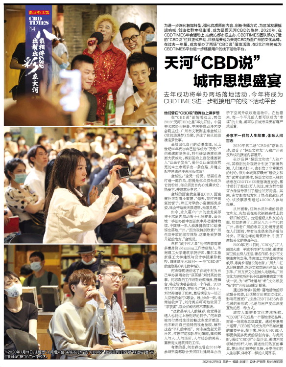 为进一步深化智媒转型,强化优质原创内容、创新传播方式,为区域发展摇旗呐喊,创造社群幸福生活,成为最懂天河CBD的媒体,2020年,在CBDTIMES年会活动上,由南方都市报主办,CBDTIMES团队倾