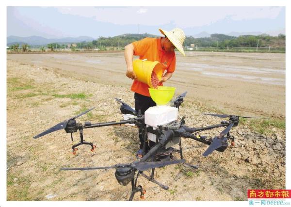 南都讯 平整好的水田上方,一台无人机发出嗡嗡声正在作业,播下的稻种均匀地撒在田地里。3月16日,佛山高明区召开2021年春耕生产现场会,拉开了万亩稻田春耕忙的序幕。