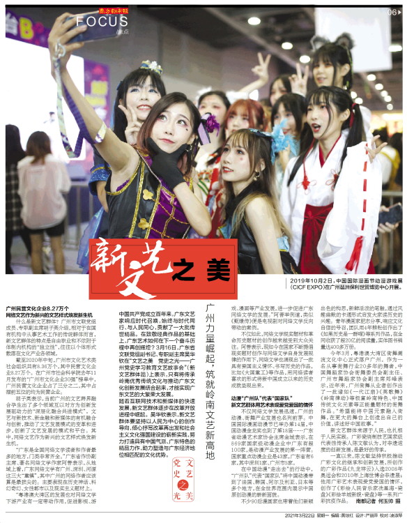 中国共产党成立百年来,广东文艺家响应时代召唤,始终与时代同行、与人民同心,贡献了一大批传世精品。在致敬经典作品的基础上,广东艺术如何在下一个奋斗历程中再创辉煌?3月16日,广东省文联党组副书记、专职副