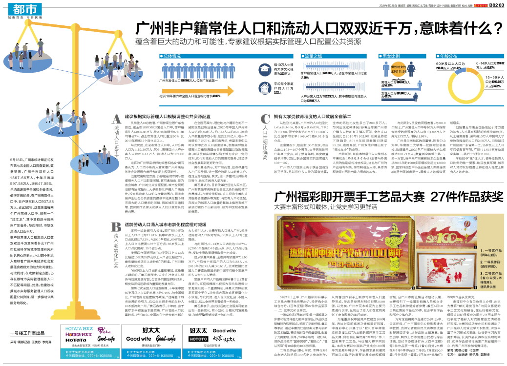5月18日,广州市统计局正式发布第七次全国人口普查数据。数据显示,广州全市常住人口1867.66万人,十年共增加597.58万人,增长47.05%,年均增速高于全国和全省情况。值得注意的是,在广州