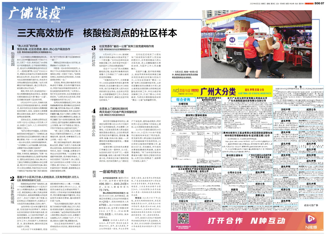 佛山力量 1 怡翠花园 “熟人社区”的代表 党员先锋、社区志愿者、楼长、热心住户高效协作 位置:南海桂城街道翠颐社区党群服务中心 从正式接到大规模核酸检测任务,到分工协作布置好场地用
