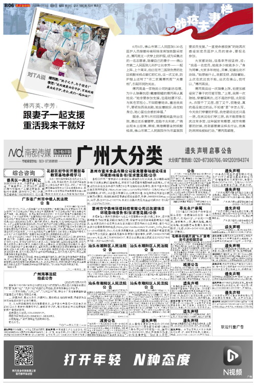 6月5日,佛山市第二人民医院130名医护人员接管岭南明珠体育馆核酸采样点。傅丙英又一次穿上防护服,成为采集点的一名志愿者,陪着自己的妻子——佛山市第二人民医院儿科护士长李芳——一起上阵。上个周末,