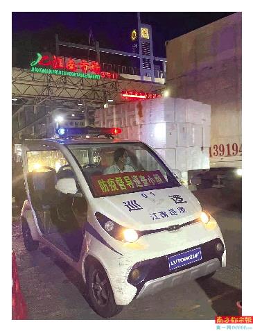 1. 市场防疫督导巡查小组的组员在市场内巡逻。