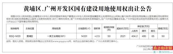 黄埔区、广州开发区国有建设用地使用权出让公告
