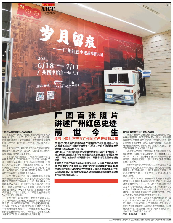 20世纪20年代的广州和如今的广州两张珠江全景图,跨越一个世纪,在这百年间广州城市发展的变迁,见证了广州人民在中国共产党领导下百年奋斗的光辉历程。6月18日,广州图书馆和文仕文化博物档案馆主办的“