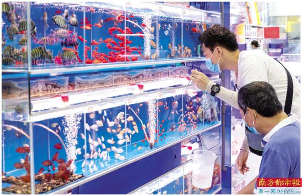 芳村花鸟鱼虫新世界里,各式各样的观赏鱼吸引市民驻足围观。该市场计划筹办国际龙鱼“选美大赛”,各项指标创历史新高。