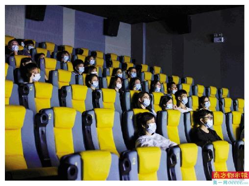 7月11日,立白哈艺影院内,市民佩戴口罩观影。