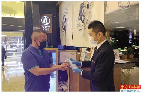 根据广州市商务局印发的《广州市商业服务企业新冠肺炎疫情常态化防控工作指引(第五版)》,广州花园酒店也通过各项措施严防死守,保证环境卫生和各项出品安全市民进入酒店餐厅用餐前,至少要经过两道“关”。酒店在大堂及各餐厅门口都设有专门工作人员为市民测量体温,确保每位进入餐厅的客人体温正常。