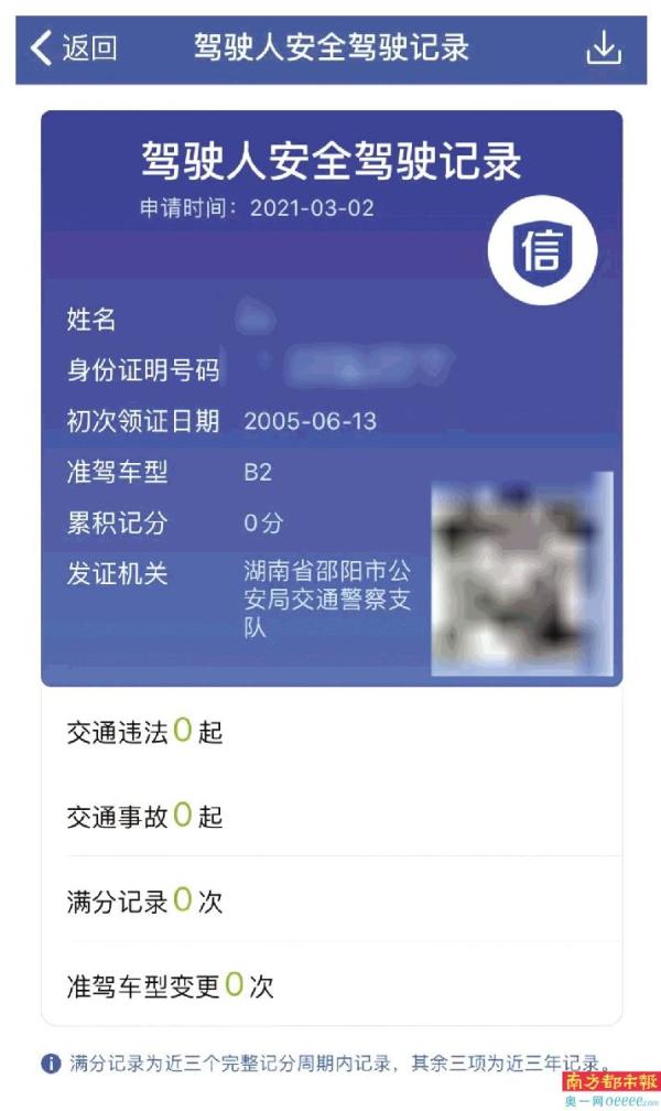 ←截至今年3月,肖先生的驾驶人安全驾驶记录累积记分仍为0分。