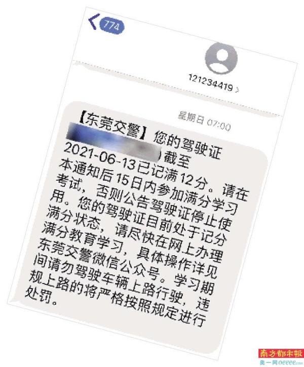 ↑肖先生收到短信,称他的驾驶证截至2021年6月13日已记满12分。