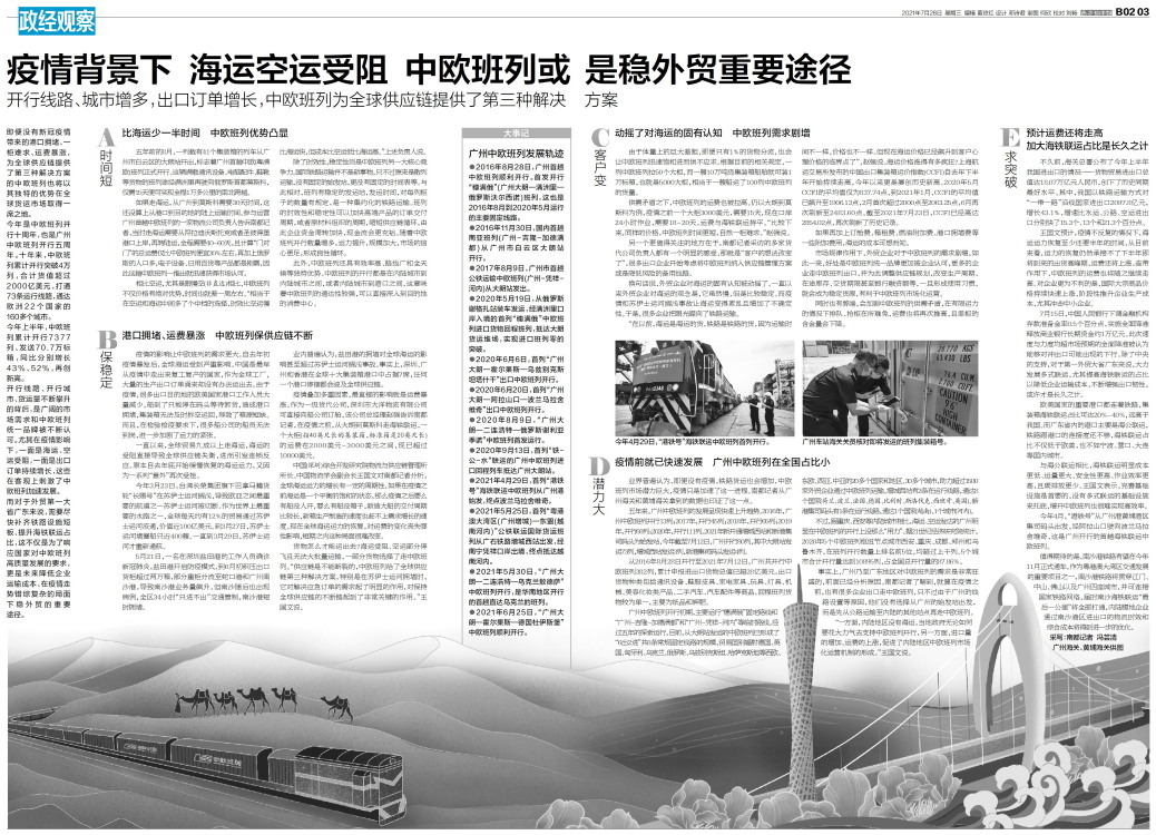 即便没有新冠疫情带来的港口拥堵、一柜难求、运费暴涨,为全球供应链提供了第三种解决方案的中欧班列也将以其独特的优势在全球货运市场取得一席之地。 今年是中欧班列开行十周年,也是广州中欧班列开行五周年