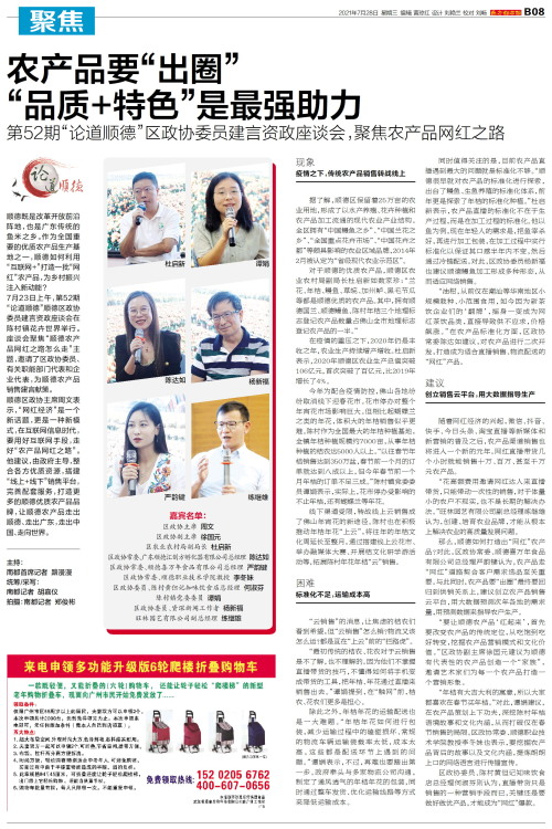 顺德既是改革开放前沿阵地,也是广东传统的鱼米之乡。作为全国重要的优质农产品生产基地之一,顺德如何利用“互联网+”打造一批“网红”农产品,为乡村振兴注入新动能?7月23日上午,第52期“论道顺德”顺