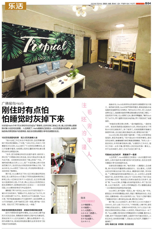 90后的Herb今年7月从学校毕业后成为广佛候鸟,白天在珠江新城上班,晚上住在佛山顺德陈村某小区的毛坯房里。入住两周了,Herb根据自己的想法一点点完善家中的装饰,从刚开始的有点害怕到如今的很享受