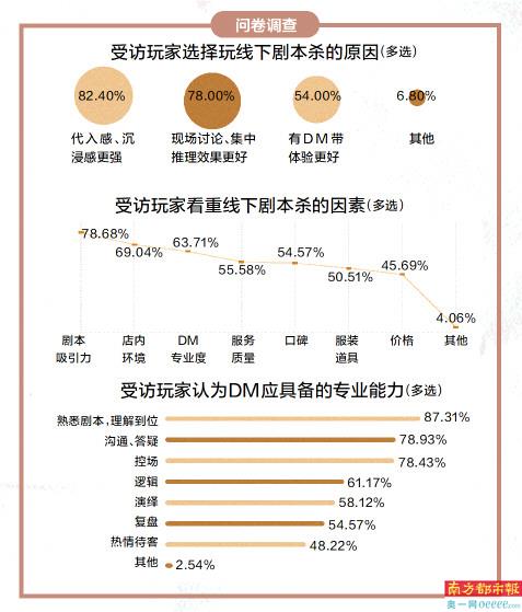 主持人是带动剧本杀游戏的灵魂。调查问卷显示,超五成受访玩家认为线下剧本杀有真人DM带领体验更好。