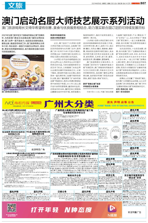 2021年为澳门获评定为“创意城市美食之都”的第四年,为传承澳门美食文化及推动澳门餐饮业界的发展,澳门业界一直不遗余力,包括结合创意和美食,推陈出新,推进各项传承工作。澳门旅游局局长文绮华介绍,特