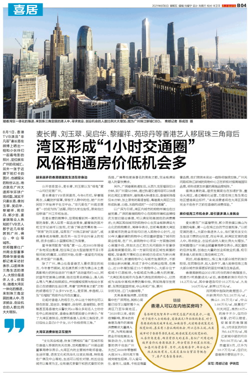 湾区形成“1小时交通圈” 风俗相通房价低机会多