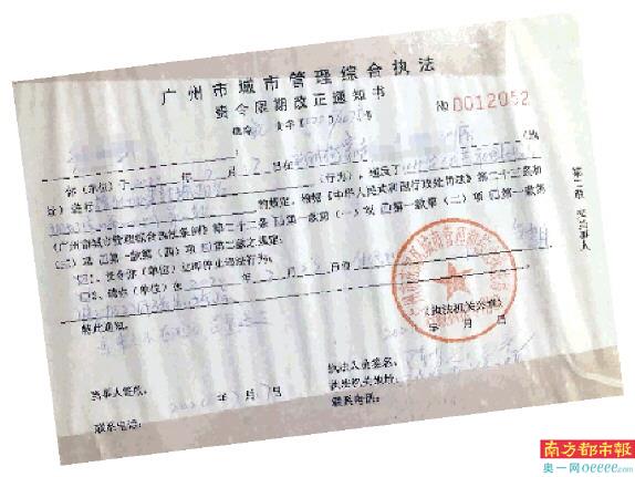 据陈先生反映,去年7月17日,花都区城市管理和综合执法局就已贴出责令限期改正通知书,因顶层业主进行擅自加建封堵阳台违反相关规定,责令业主单位在去年7月23日前自行拆除,逾期将上报政府强制拆除。“然而贴了那么久,违建依然没有拆,投诉电话打了好几次也没有用。”