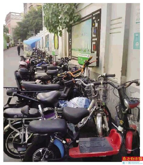 记者走访看到,部分小区仅有停放场所而无充电场所,有的停放场所也不规范,比较杂乱。更有一些小区的电动车随意停在楼下,或者干脆停在街边、马路边。至于充电场所、设备,也是“稀缺”的资源。十三行附近的城启十三行广场,小区虽有集中停放地方,但充电需居民自己解决。德兴苑小区的电动车自行停放在小区外围马路边,据了解6月至7月已被偷电动车四辆,小区保安并不对此负责;物业公示称,即将在小北苑改造建设停放充电点。