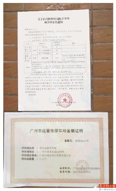 小区物业公示停车收费标准和备案证明。 受访者供图