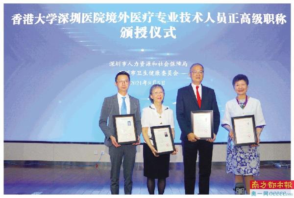 南都记者了解到,这是深圳市首次为在深圳工作的港籍医生直接认定颁发正高级职称证书,也是深圳市建立与国际接轨的医学人才培养体系,放宽境外医师到内地执业的限制,创造更积极、更开放、更有效的人才引进环境,加快建设粤港澳人才合作示范区的重要探索。