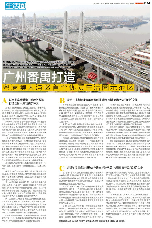 日前,广州市推进粤港澳大湾区建设领导小组审议通过《番禺粤港澳优质生活圈示范区建设总体方案》(下称《总体方案》),广州市番禺区将建设粤港澳大湾区首个“宜居宜业宜游”优质生活圈示范区,为港澳居民到内地