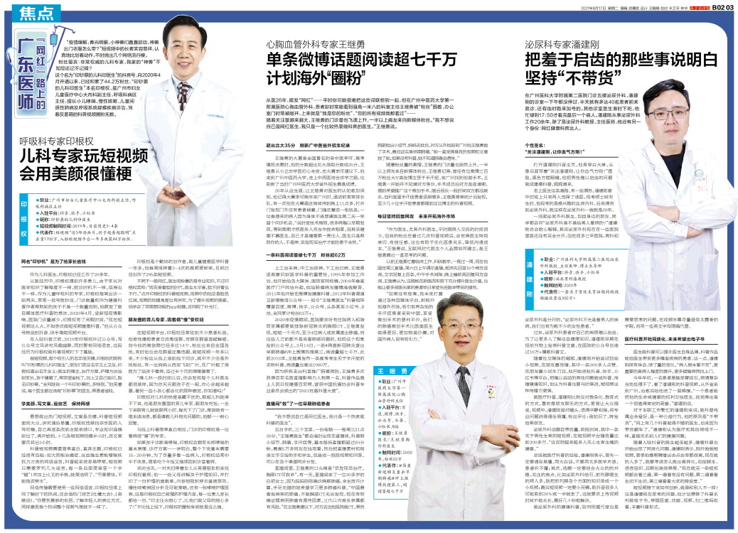 王继勇 职业:广州中医药大学第一附属医院心胸血管外科主任 入驻平台:百度、微博、快手、公众号、头条、小红书、B站 昵称:王继勇医生/王继勇胸外科医生 触网时间:2000年,粉丝62万