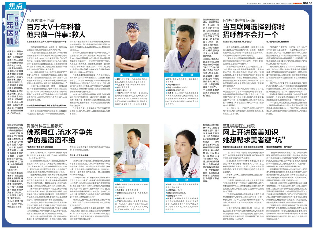 王西富 职业:广州市第一人民医院资深急诊医生,现担任医院模拟医学中心主任 入驻平台:微博、微信公众号、抖音 昵称:急诊夜鹰 触网时间:2011年 代表作:2020年9月微博一条《北京地铁