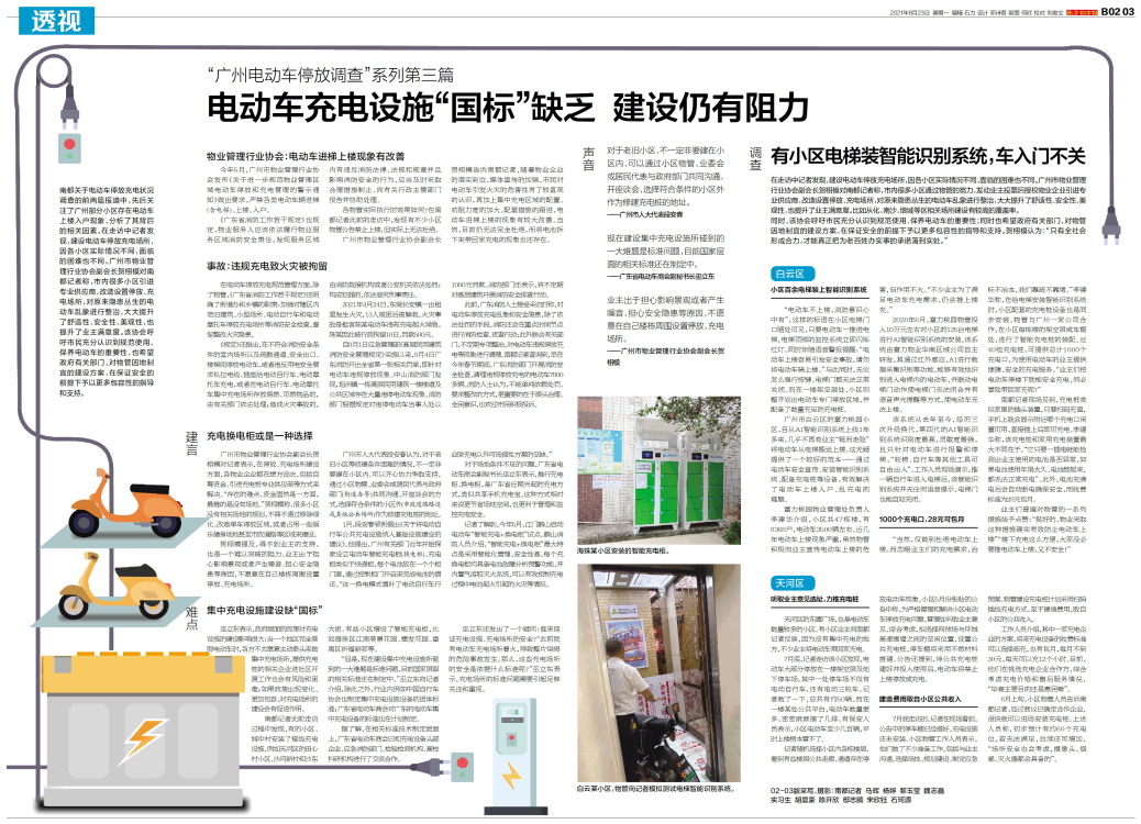 业主出于担心影响景观或者产生噪音、担心安全隐患等原因,不愿意在自己楼栋周围设置停放、充电场所。——广州市物业管理行业协会副会长贺栩模