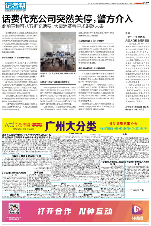 在话费代充平台上充值,话费却迟迟未到账。近日,多地网友向南都反映一家名为“A惠充88”的话费代充平台疑似跑路。据不完全统计,反映在该平台充值却未到账的消费者可能多达上千人。日前,南都记者实地走访位