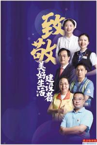 一起为美好生活奋斗 致敬美好生活建设者 城市道路上,公交司机微笑服务通勤乘客; 建筑
