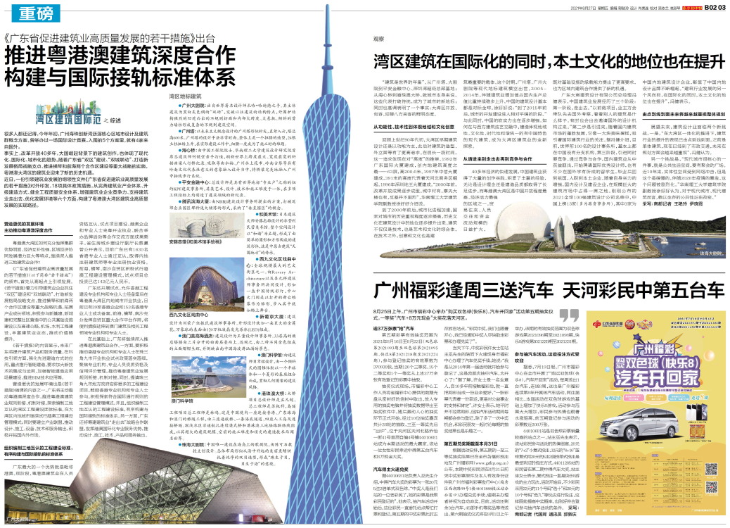 在此基础上,广东将继续深入推进粤港澳建筑业合作。一方面,要积极推动香港专业机构和专业人士在珠三角九市开业执业试点政策落实落细,聚焦专业机构、专业人员资质资格及信用评价管理,推动粤港建筑业发展规则衔接、机制对接。同时,提请珠三角九市地方政府安排更多的工程建设项目,鼓励香港专业机构和专业人士参与,积极探索符合国际通行规则的工程建设管理模式。并且,组织编制三地互认的工程建设标准,有序构建与国际接轨的标准体系。另一方面,广东还将筹建建筑业“走出去”战略合作联盟,发挥港澳国际化专业服务优势,推动设计、施工、技术、产品和服务输出。